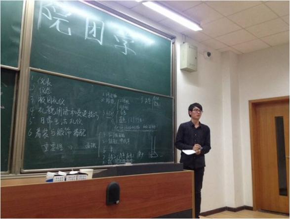 校大使团讲解部部长晁盛成为大家进行了个人仪表仪态、校园礼仪、礼貌用语和交谈技巧、日常生活礼仪、着装和服饰搭配五个方面的培训。结合案例演示,他进行了注重“修”边幅、眼镜的佩戴、衬衫颜色与成分、西服的选择和纽扣的系法、皮鞋的选择、发型等十个小项的讲解,幽默的表达和形象的肢体动作让在场的听众在轻松的气氛中受益匪浅。随后,奚小茜团长又结合大使团的工作经历以及日常学习生活中常遇到的问题对之前的培训内容进行了强调,同时还结合现场女生的提问对女生的仪表仪态和气质、化妆技巧等进行了互动讲解。