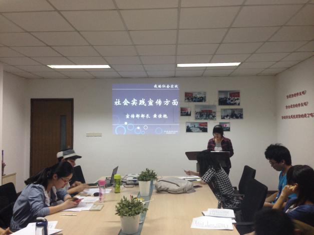随后团委学生会组织、宣传、青工三个部门的负责同学分别就本年度社会实践工作分工进行了交流。组织部部长李莉解读了社会实践的七大主题,宣传部副部长黄佳艳分析了社会实践的媒体宣传,青工部部长叶逾冠详细说明了本院的社会实践的青工立项,并由301班团支书何睿朗补充了301班的社会实践立项。