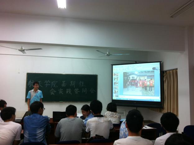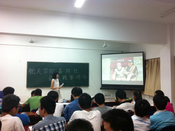 答辩开始,每个团队分别进行3分钟的自我陈述,向大家展示暑假中团队的成果。每个团队答辩人通过精心制作的ppt、照片集或视频的形式展示了自己团队暑期辛苦得来的实践成果,也说出了在整个实践过程中的心得体会。Story teller 团队感人温馨的视频、与青奥共成长团队对青奥宣传的努力、潇湘行民族情团队带来的不一样的民族风、fixer团队精湛的技术和影响力、筑梦•大学团队对高三学生的激励等都给在场的所有人留下了深刻印象。接着评委们针对每个团队都进行了譬如针对团队活动细节、成员分工等多方面的细致提问,也切实地对团队给出了宝贵建议,每个团队也将在答辩结束后根据建议进行最后的改进。最后整个答辩在主持人的总结中圆满结束。