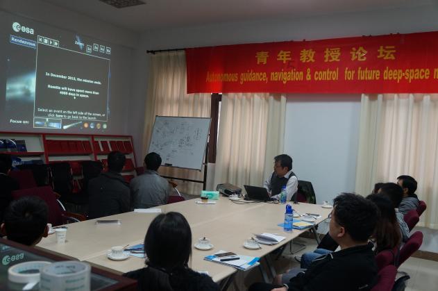 11月21日下午,德赢vwin最新版下载院长助理李爽教授应学院研会邀请在316会议室举办了青年教授论坛之Autonomous guidance, navigation & control (GNC) future deep-space missions(深空探测中的自主导航、制导与控制),校科协老师、学院博士生导师南英教授、韩艳铧副教授、张汉青老师以及学院众多对该专业感兴趣的学生参加了该次论坛。
