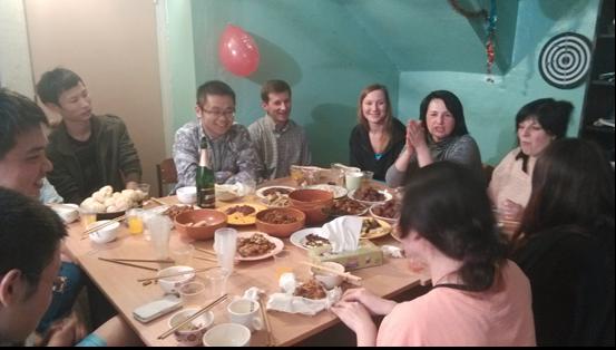 飞雪迎春到,三“羊”开泰来。南航中乌班(中国-乌克兰联合培养班)在乌的18名学生在中国农历除夕这一天欢聚一堂,并邀请了哈航的四位老师(分别是无线电系亚历山大副教授、国际学院负责老师叶连娜、俄语老师奥列格、娜塔莎)以及哈航外国语学院的两位中国学生一同欢度中国农历羊年春节,共迎新春。