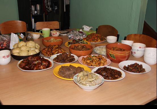 当天,同学们早早地便忙活起来,每个人都亮出了自己的拿手绝活。蒸包子、包饺子、麻辣豆腐、酱牛肉......让老师们直呼等不及开饭了。早些来的老师还一起学习包起了饺子,虽然捏的有些奇形怪状,可大家一起其乐融融,尽情分享新年即将到来的愉悦。
