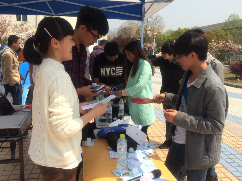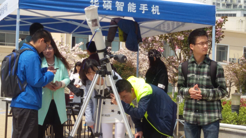 本次航天节系列活动中,德赢vwin最新版下载联合天文爱好者协会,在樱花广场进行了太阳黑子的观测以及测量地球半径的活动。透过天文望远镜里观测太阳黑子,亲眼看到在课本中所学到的知识,使在场的同学们格外兴奋。而在广场上摆放的一些物品,就能粗略测量出地球的半径也让同学们大呼长知识。通过亲身体验,让同学们对外太空有更多的了解,从而加深对航天的兴趣。