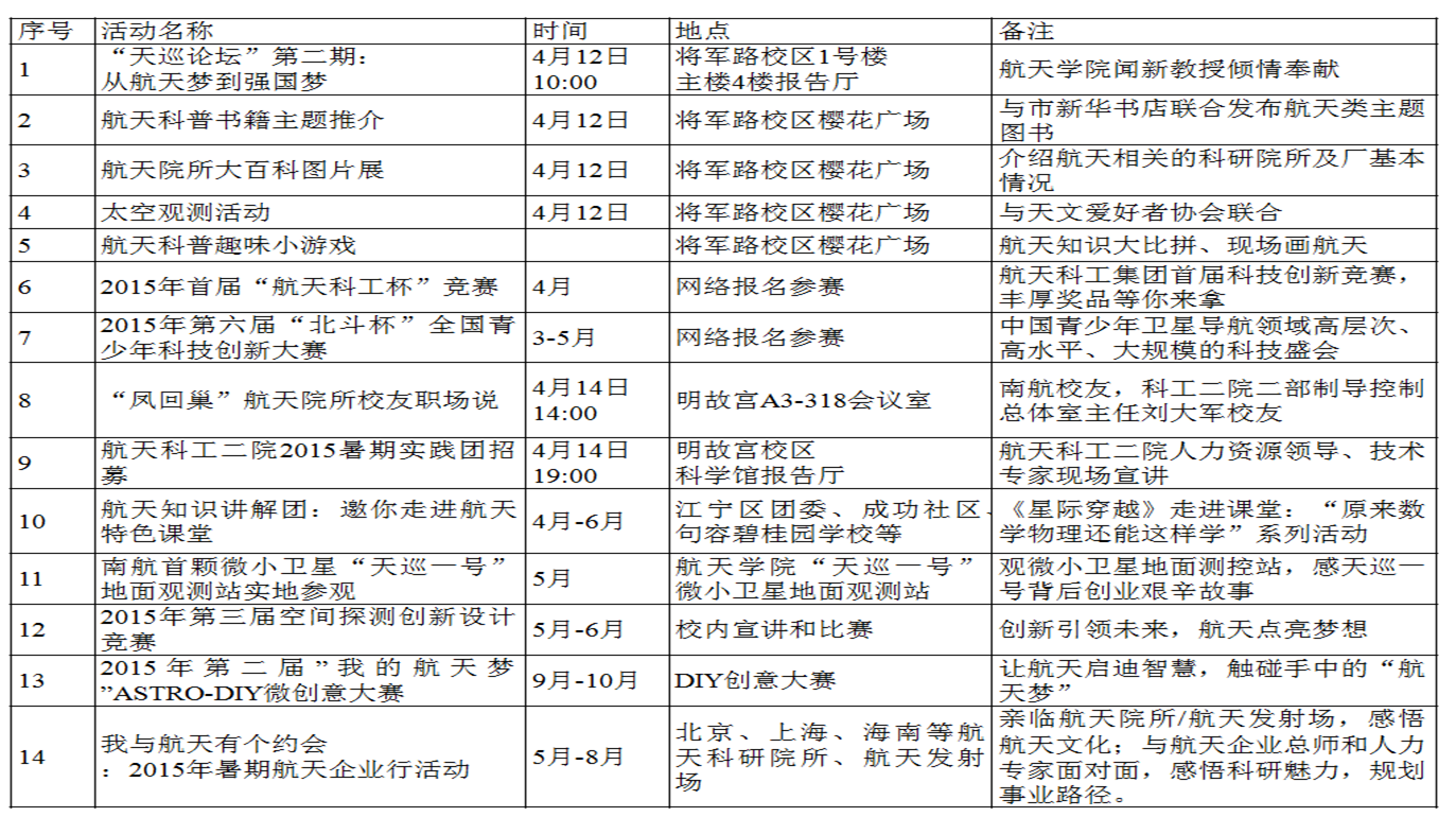2015年4月12日,“世界航天日”在热衷航天的青年学子的热烈期待中来到南航。德赢vwin最新版下载以“展航天风采,传梦想力量”为目标,在南航校园内组织开展了“世界航天日”主题系列活动。