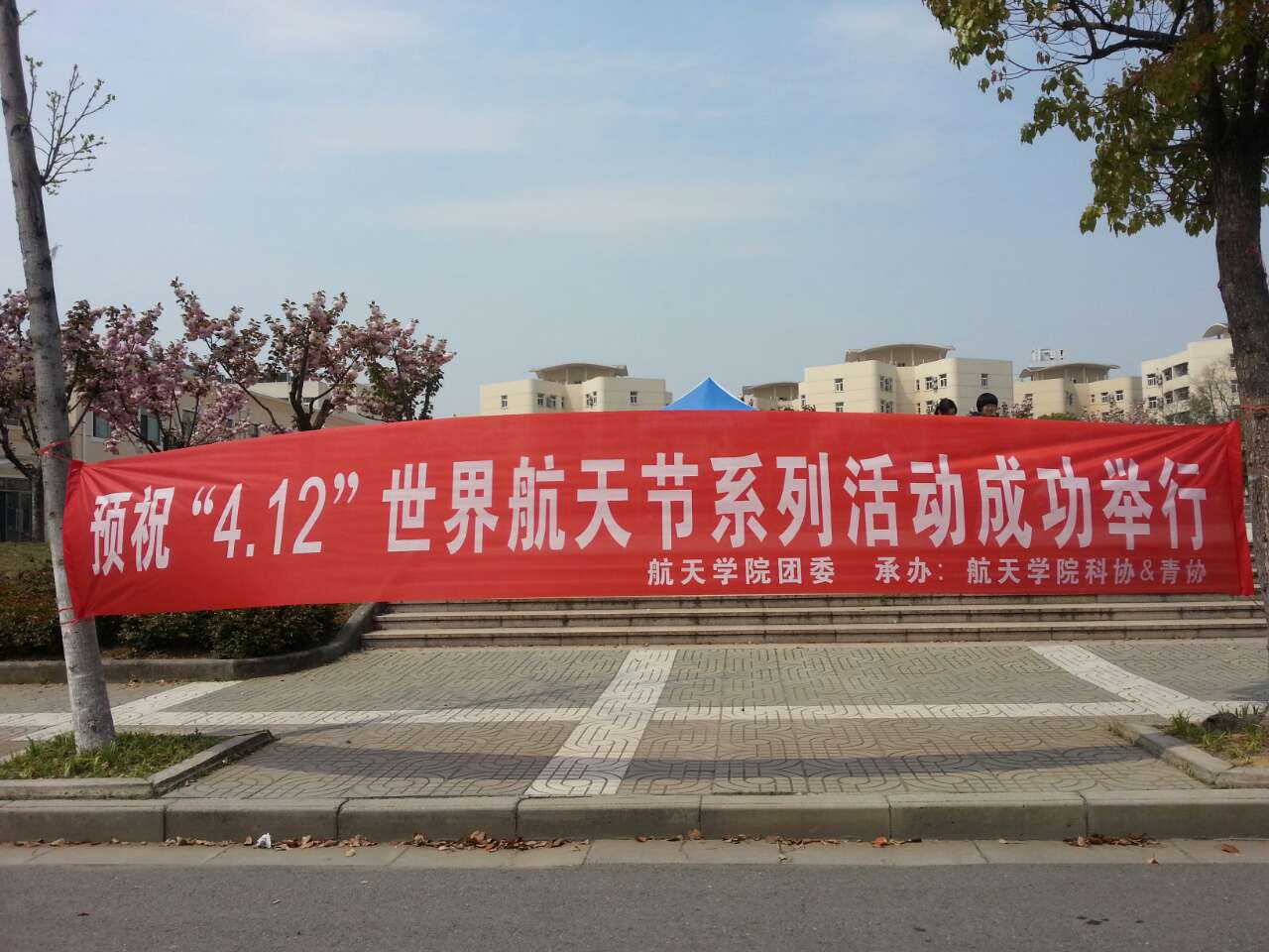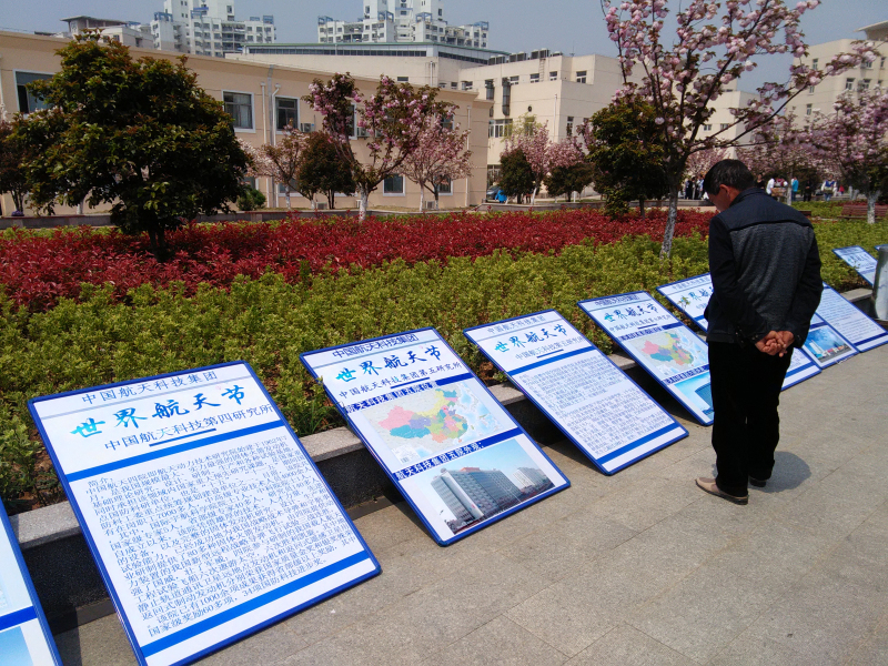 航天院所大百科图片展旨在介绍航天相关的科研院所地理位置及基本情况,加强同学们对现实中航天领域的感知。樱花广场的樱花下放置大量介绍中国航天科工集团和中国航天科技集团下属的研究院及科研所的展板。走过樱花广场,沿路可以浏览展板上航天科研院所的信息,让同学们更深刻的体会航天,心系航天。