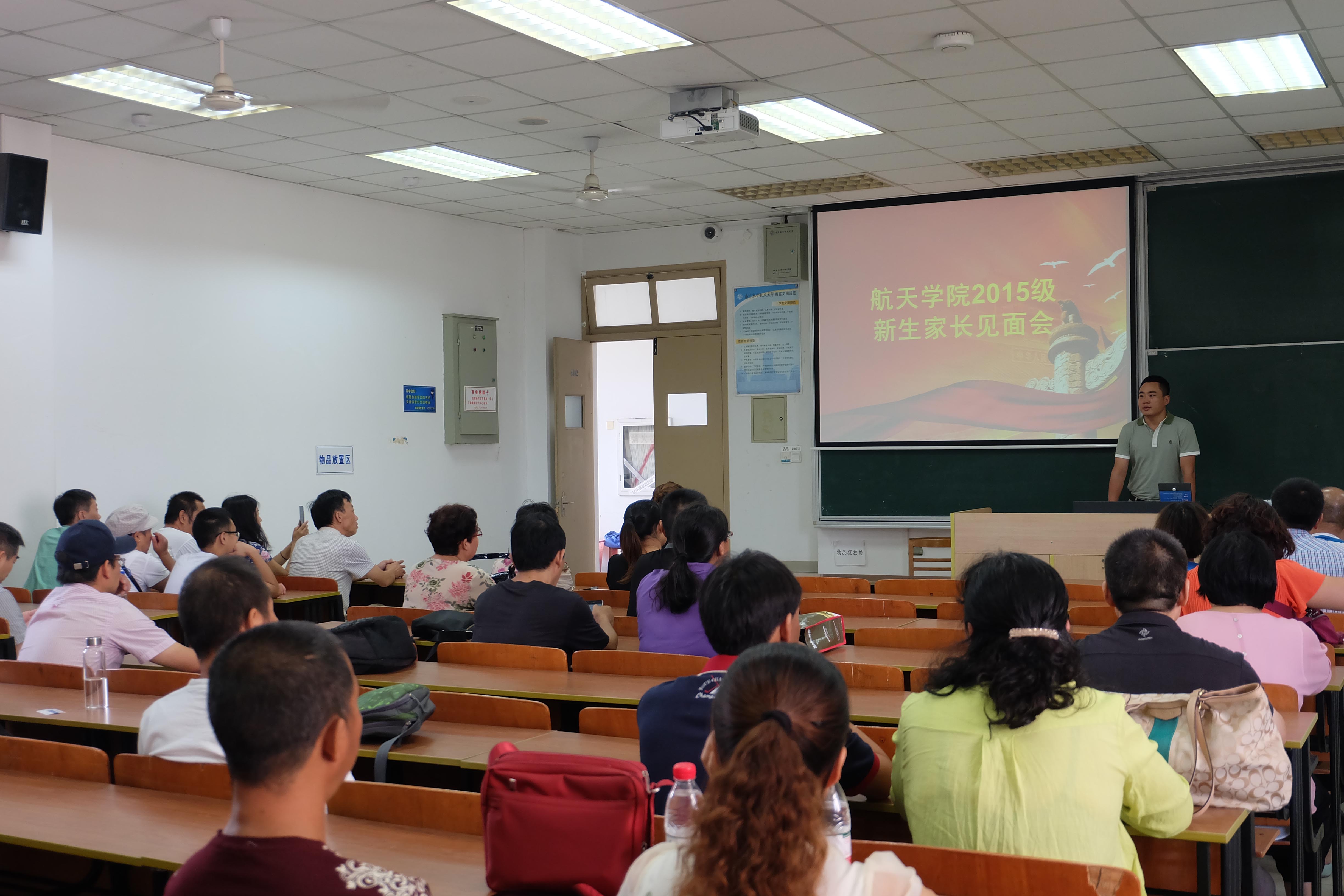 继而德赢vwin最新版下载党委副书记李和新从四个部分介绍了“德赢vwin最新版下载”这个即将十岁的新兴学院——学院基本情况、“群星计划”和学院人才培养特色举措、学院就业情况介绍以及对家长的建议,从书记的语气中不难听出,他对2015级新生同样充满期待、抱着希望前行,他提出2015级新生一定可以像他们优秀的学长学姐一样,成为航天界和社会的杰出人才。同时,书记给了坐在台下的家长衷心的建议,从分析大学学习和中学学习的区别入手,告诉家长孩子在大学期间家长应该关注哪些方面,更需要和校方多沟通,家校共同为孩子的成长助力。
