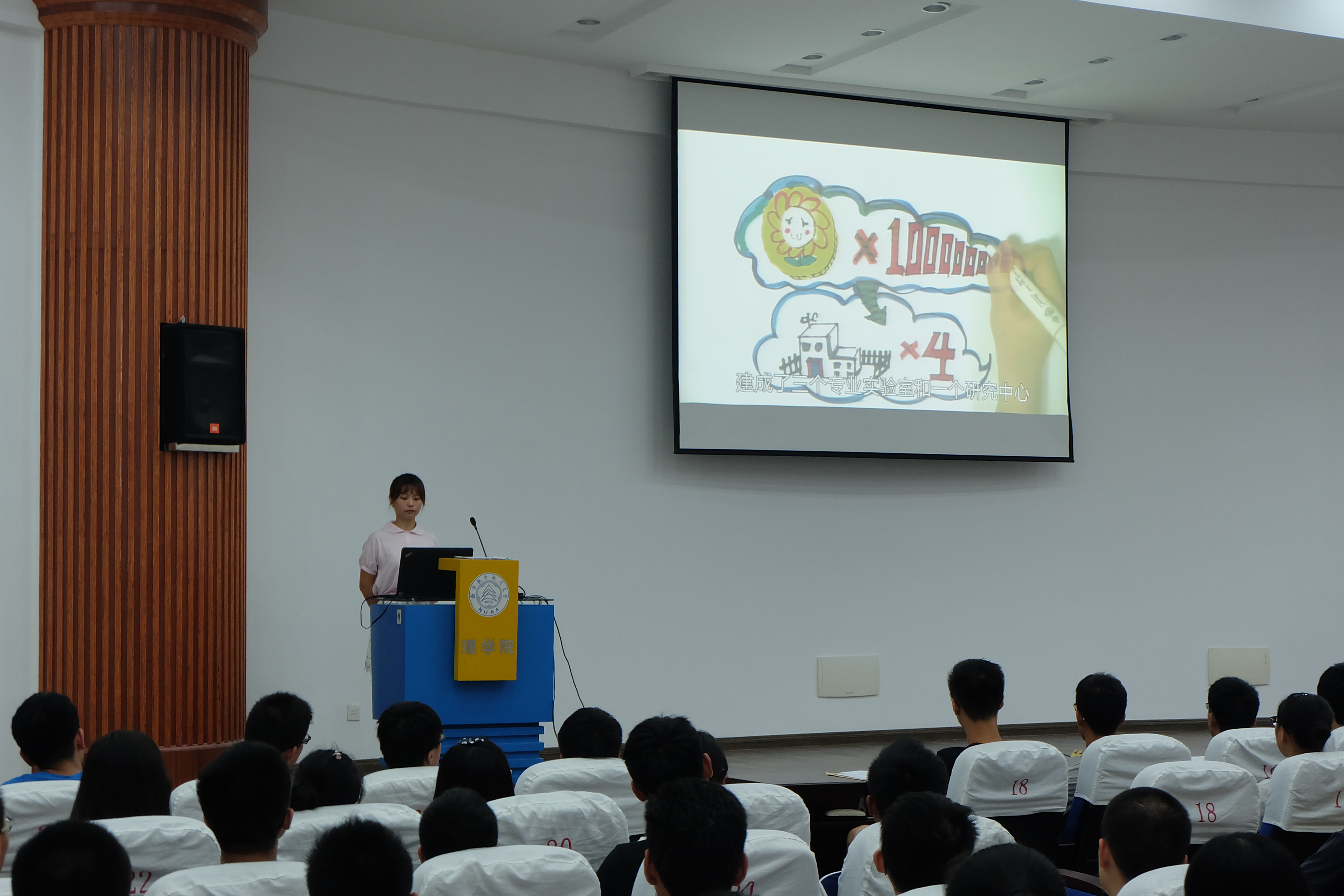 接下来在简短的自我介绍以后,辅导员刘洁为大家详细讲述了什么是辅导员以及辅导员的工作。辅导员是将要陪新生走过大学四年青春的人,在这四年里,和他们一起成长,为他们的迷茫出谋划策,为他们的成就高声喝彩。