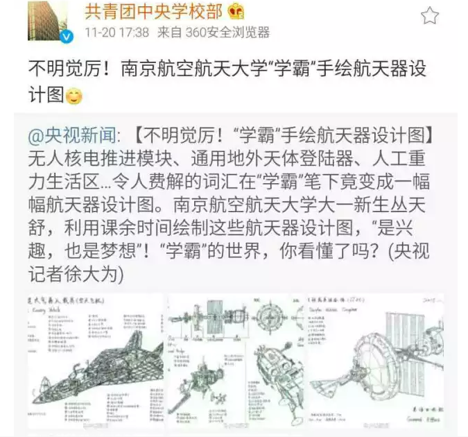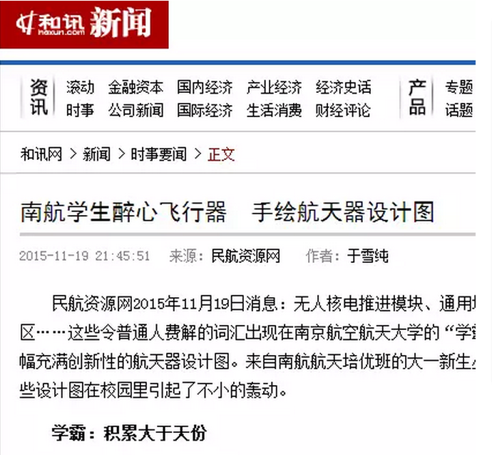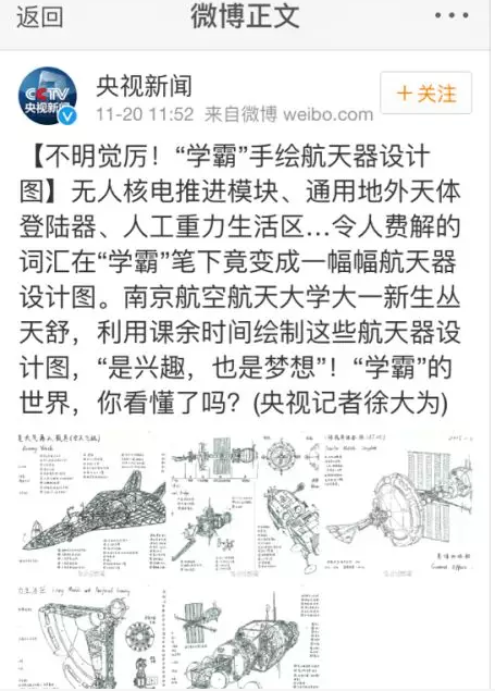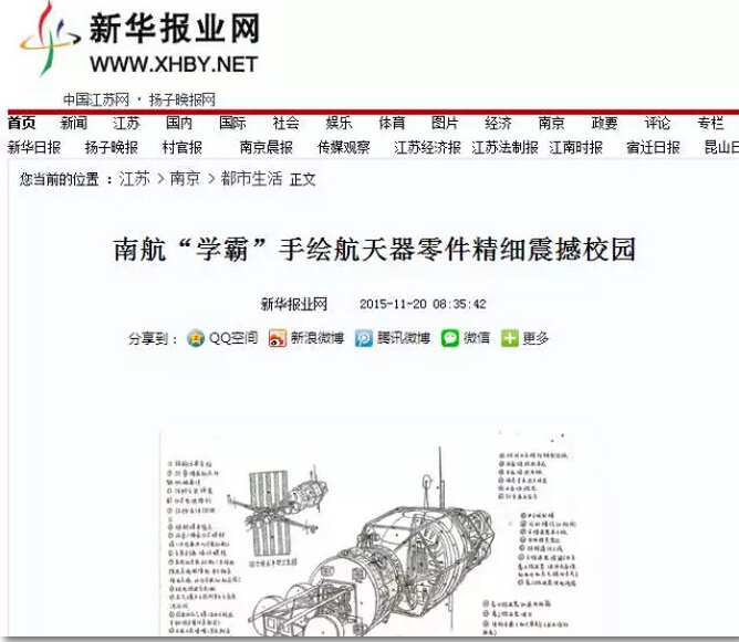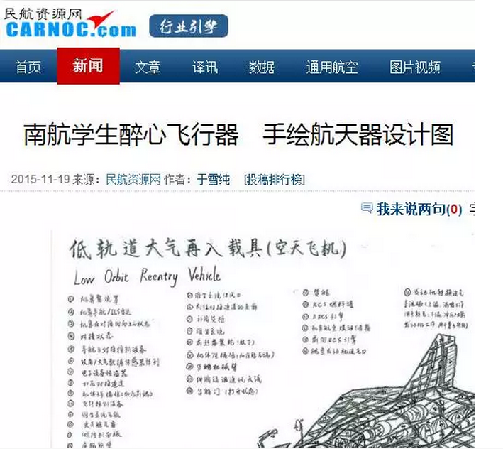 最近,南京航空航天大学校园内一系列令人震撼的手绘飞行器设计图受到多家媒体的关注报道,新华报业网、中国江苏网、南京晨报、和讯新闻、腾讯大苏网、民航资源网、龙虎网等,同时被央视新闻、共青团中央学校部、中国航天科工等官方微博进行转载,转发量2000+次,点赞量5000+次,截止小编发稿前,转发还在继续,点赞还在蜂拥而至!据了解,手绘作品来自德赢vwin最新版下载2015级培优班的丛天舒同学,外号五哥!究竟是怎样的手绘图能受到如此的追捧和点赞?当高大上的飞行器遇到唯美清新的手绘设计,当科学遇上艺术,兴趣也能成就梦想!让我们一起来一睹为快!
