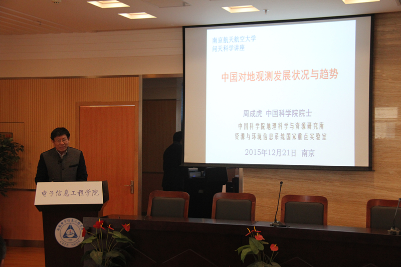 2015年12月21日,中国科学院院士、中国科学院地理科学与资源研究所研究员,地理信息系统与遥感应用专家周成虎教授应德赢vwin最新版下载邀请来我校访学,并以《中国对地观测发展状况与趋势》为主题做了学术报告。报告会由校长助理熊克主持,德赢vwin最新版下载及电子信息工程学院的教师、学生参加了此次报告会。