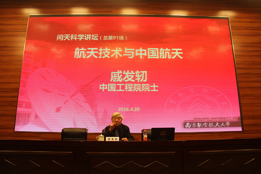 在时长两个小时的报告中,戚发轫院士围绕“航天技术与中国航天”主题,从中国航天发展的三个里程碑开始谈起,介绍了南航人在中国航天发展历史各个阶段做出的突出贡献,对南航培养出优秀的航天领军人才表示肯定与感谢,让在场师生为“嫦娥三号”探测器系统总设计师孙泽洲这样的航天领域杰出校友倍感自豪与荣耀。