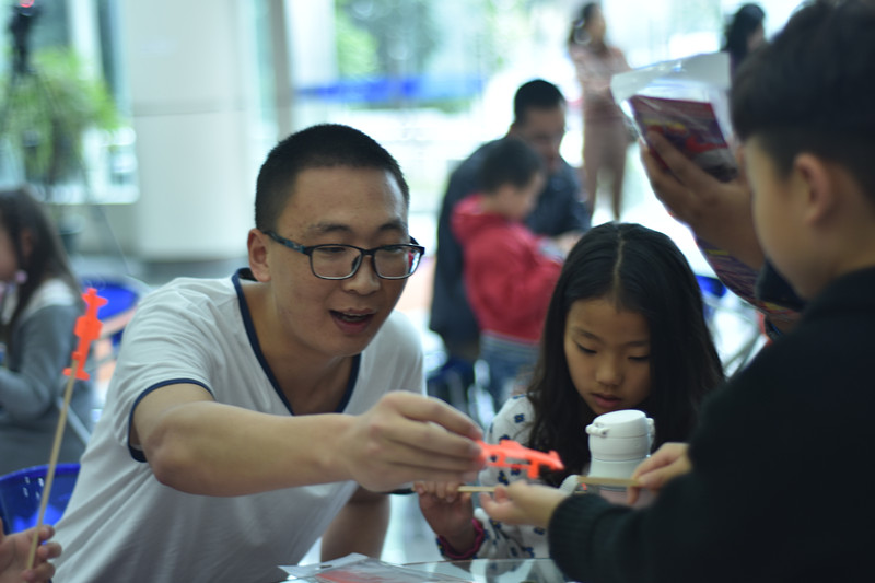 活动现场,南京航空航天大学航天科工科技创新社团成员、南航德赢vwin最新版下载2015级研究生带领现场的小朋友制作航模。德赢vwin最新版下载15级研究生韩铖、陆晓忆为小朋友们讲解飞行器的相关知识以及航模的制作流程,随后分组引导小朋友们完成航模的制作。