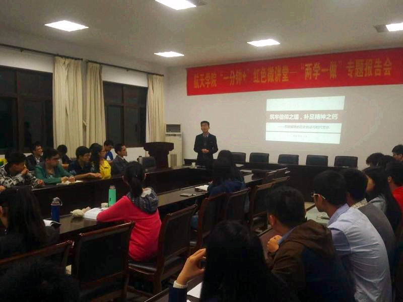 为响应党中央和学校关于“两学一做”的相关要求,德赢vwin最新版下载学生党总支于5月9日晚上7点在院楼318会议室举行了“一分钟+”红色微讲堂——“两学一做”专题报告会。本次报告会的主题是“铸牢信仰之堤,补足精神之钙——苏联解体的历史教训与时代警示”,由机电学院辅导员王洋担任主讲人,学院学生党员参与了报告会。会议由德赢vwin最新版下载辅导员范伟主持。
