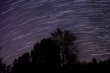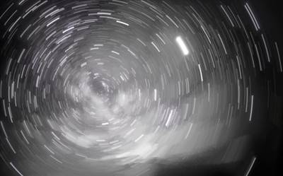 在漫长的深夜里,星星缓慢移动,构成的美丽的星轨。