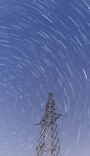 星河璀璨,与电网交织,就像人类与自然的融合,和谐美好。