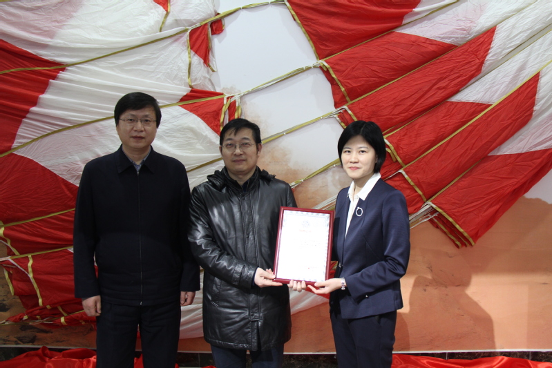 北京空间机电研究所副所长阮宁娟、总监高树义、我校副校长吴启晖、“人民科学家”叶培建院士共同为降落伞揭幕,吴启晖副校长向阮宁娟副所长颁发了捐赠证书,高树义总监向参加活动的师生介绍了降落伞的相关情况。该展品是“天问一号”初样阶段高空开伞试验用降落伞,其伞降减速技术由北京空间机电研究所和我校共建的“航天进入减速与着陆技术”航天科技集团重点实验室负责完成。同时,“天问一号”探测器总设计师孙泽洲也是我校1988级校友。